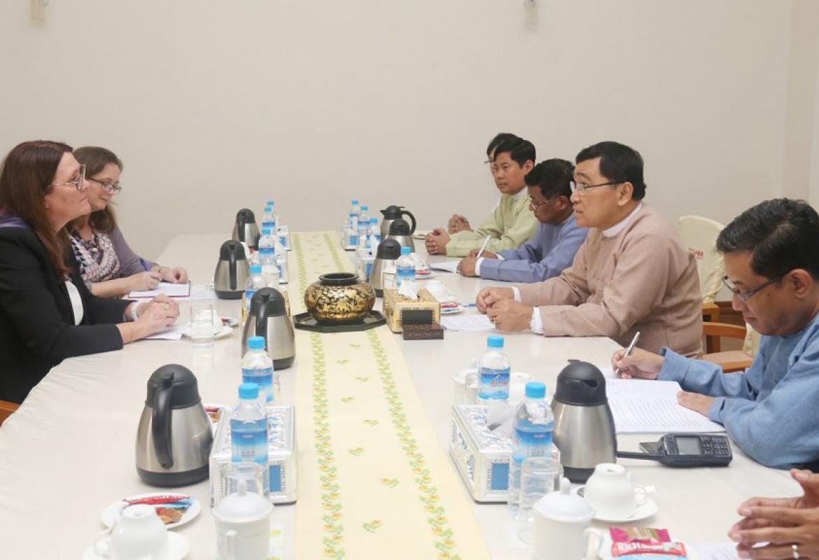 Union Minister for Social Welfare, Relief and Resettlement Dr Win Myat Aye and Ambassador of Canada to Myanmar Ms Karen Mac Arthur discussed yesterday afternoon providing humanitarian assistance and repatriation programmes for displaced persons