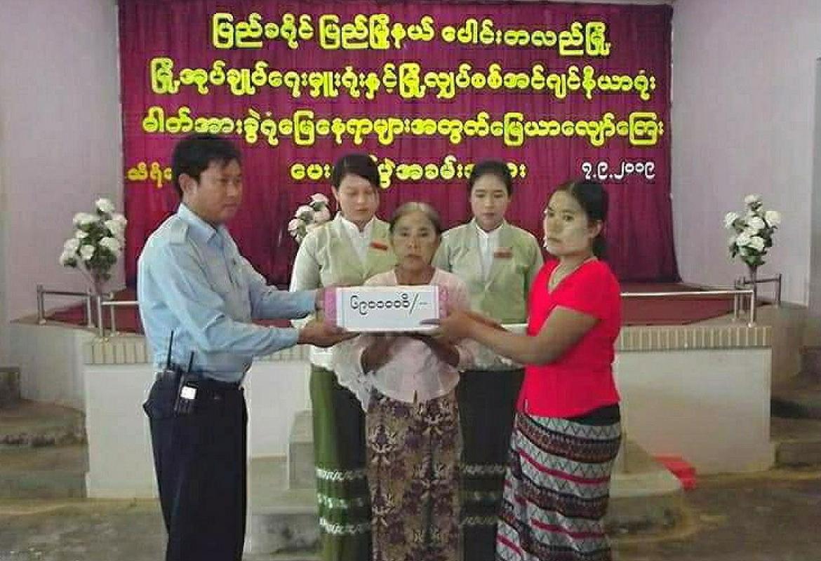 A ceremony to pay compensation to land owners who lost their lands in the construction of Administration Office and Electrical Engineering Office was held at Thiri Hall in Paungtale this morning.