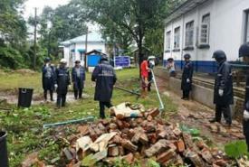 Policemen led by Police Major Min Aung, head of the township Police Force conducted clean-up in the compound of the township hospital in Kyaikmaraw Township, Mon state yesterday morning