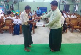 The Deputy Minister for Social Welfare, Relief and Resettlement U Soe Aung provided cash assistance to earthquake victims in KhinU Township, Sagaing Region on 3 September.