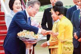 PRESIDENT of the Republic of Korea Moon Jae-in and wife Kim Jung-sook arrived in Myanmar o
