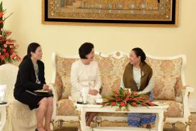 First Lady Daw Cho Cho cordially received First Lady of the Republic of Korea Mrs Kim Jung