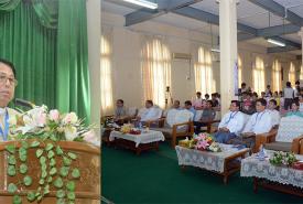The Deputy Minister first inspected the damaged pagodas in Sisongon Village, Padauk Chaung village-tract, and handed over donations to the presiding monk.