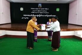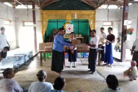Representatives from the District Red Cross Committee presented relief items donated by the Myanmar Red Cross Society (MRCS) to storm victims in Mohnyin Township, Kachin State on 19 August.