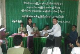A ceremony to donate cash assistance to schools in flood-hit areas was held at the office of flood relief command in the town of Kyaikmaraw, Mon State yesterday.