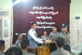 Family members of fallen policemen were provided with financial assistance in the meeting hall of Kyaukme District Disaster Management Department in Shan state (north) this morning.