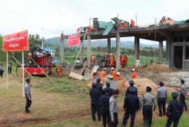 A ceremony to present land compensation to farmers whose farmlands were confiscated when an approach to the Sittoung River crossing bridge on Yedashe-Kayinchaung Road was built at the office of General Administration Department in Yedashe Township, Bago Region.