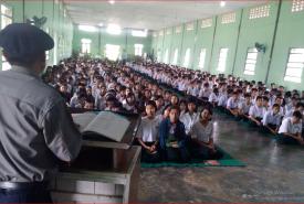 Informative talk on reduction of crimes, traffic accidents and prevention of human trafficking was held at B.E.H.S in the town of Dedaye, Pyapon District, Ayeyawady Region yesterday.