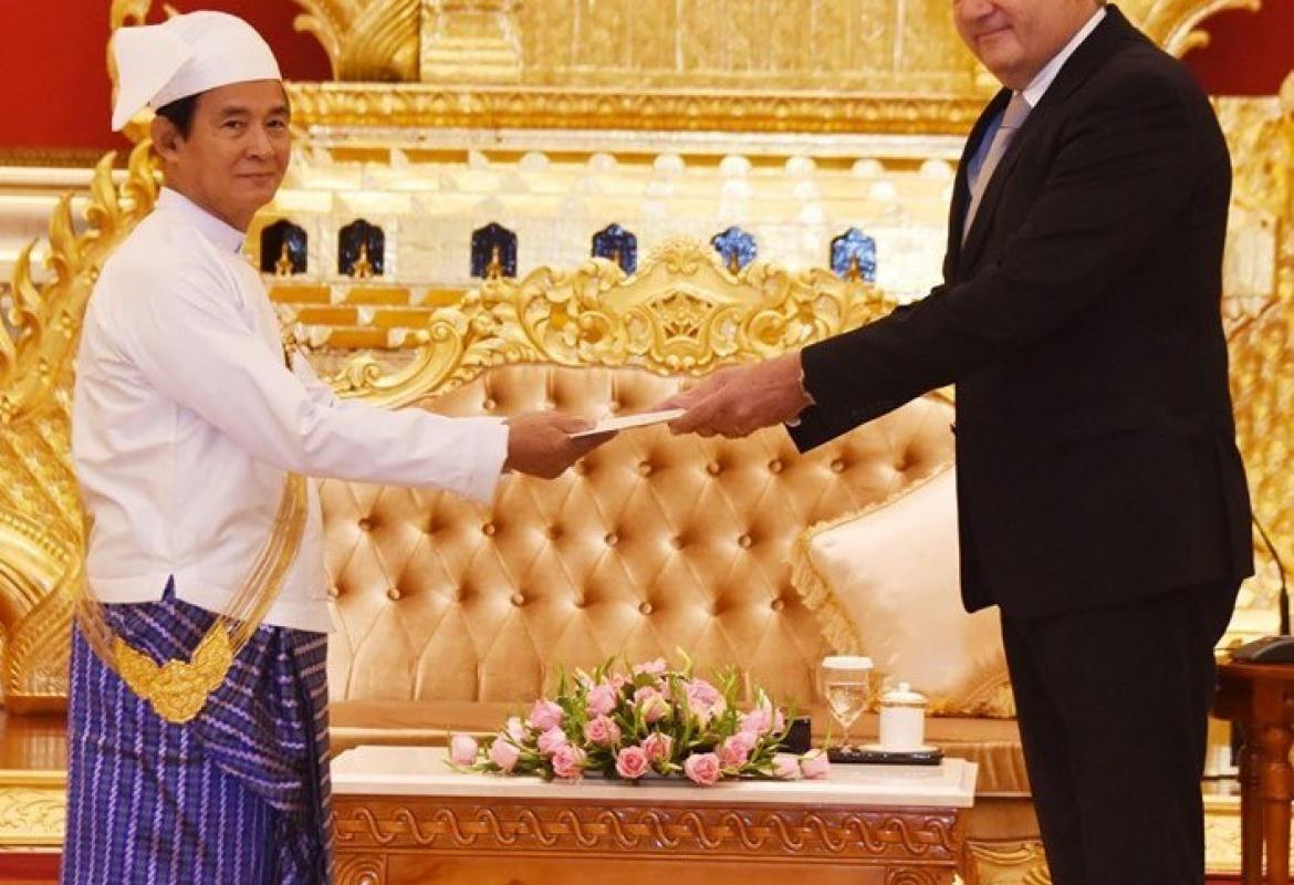 A ceremony to provide financial aid and rice to Mon State Government, organized by Bago Region Government, was held at the office of Mon State Government yesterday.