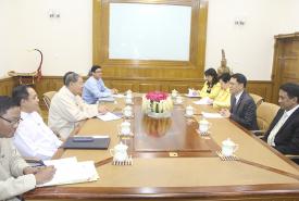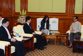 Amyotha Hluttaw Deputy Speaker U Aye Tha Aung received Mr Qie Yingcai, Mayor of the city of Xiangyang in China’s Hubei Province and party at the Amyotha Hluttaw J Hall in Nay Pyi Taw yesterday.
