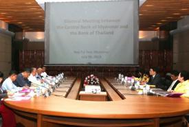 Union Minister for Planning and Finance U Soe Win received Governor of the Bank of Thailand Mr Veerathai Santiprabhob at his ministry in Nay Pyi Taw yesterday.