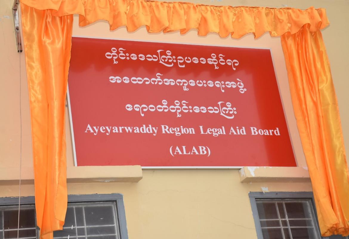 A ceremony to open Ayeyawady region Legal Aid Board office and to put up its signboard was held at the township General Administration Department in the town of Pathein, Ayeyarwady region this morning.