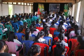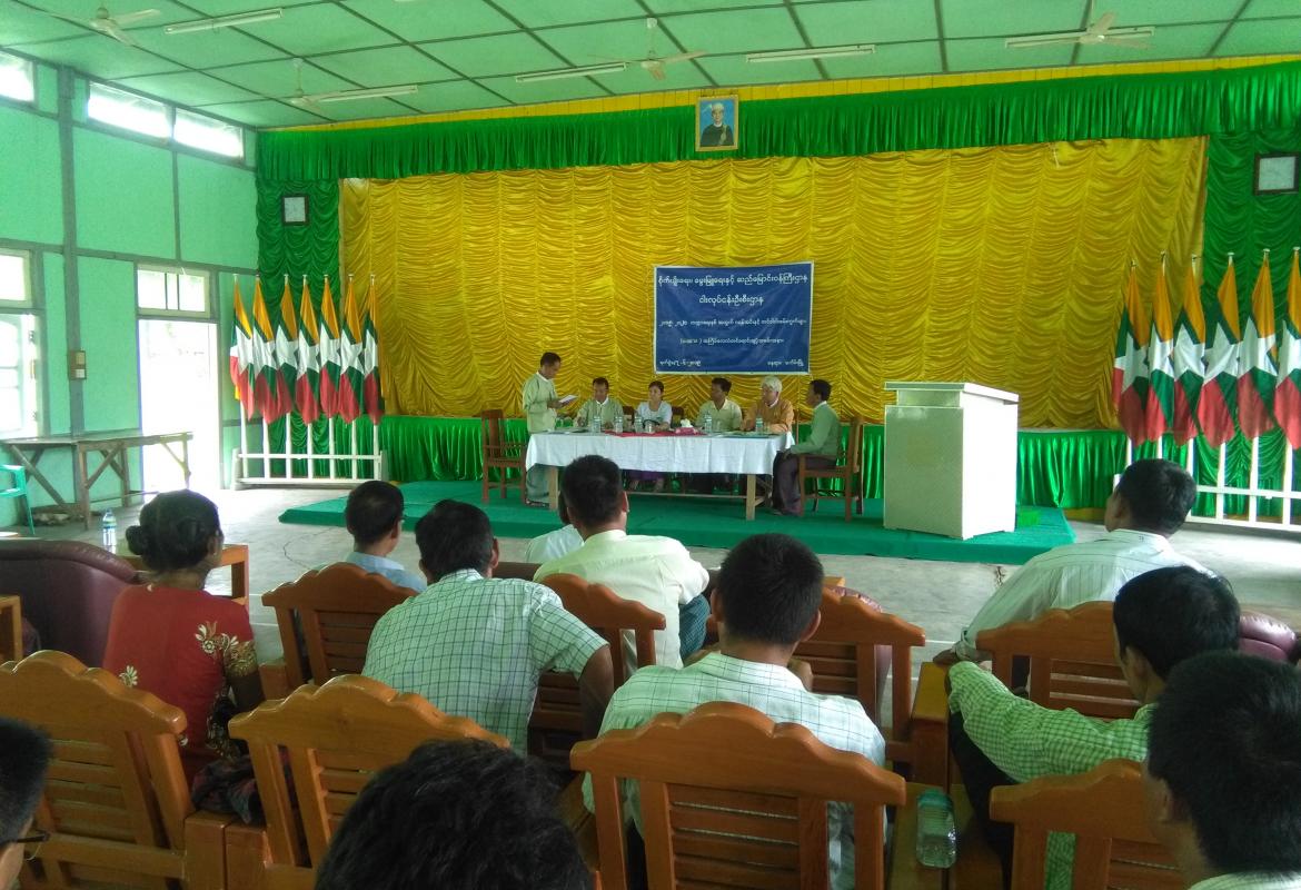 Fisheries Department under Agriculture, Livestock and Irrigation ministry auctioned off fishing lakes in Mabein townsip to grant fish farmers commercial fishing in 2019-2020 fiscal year in the town hall of Mabein township, Moemeik district, Shan state (North) this morning.
