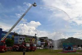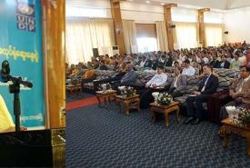 A fire drill was conducted in conjunction with a knowledge sharing event about the natural disaster at the township sports grounds in Shwebo, Sagaing Region this morning.
