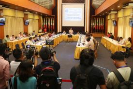 A meeting between Dr. Win Myat Aye, UEHRD Vice Chairman (1), UEHRD committee members and Task Forces was held at the National Reconciliation and Peace Center in Yangon yesterday afternoon. Dr. Win Myat Aye is also the Union Minister for Social Welfare, Relief and Resettlement. (UEHRD – Union Enterprise for Humanitarian Assistance, Resettlement and Development in Rakhine).