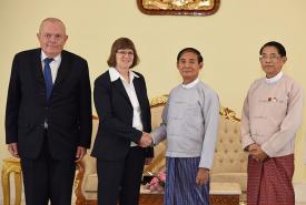 President U Win Myint received outgoing German Ambassador to Myanmar Mrs. Dorothee Janetzke-Wenzel who completed her tour of duty in Myanmar, at the Presidential Palace in Nay Pyi Taw yesterday morning.