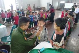 Medical team led by Brigadier General Kyi Taik, Deputy Principal of Army Combat Forces School (Bayintnaung), Southern Command, provided free medical treatment to students at a stadium in B.E.H.S in Tan Daung Gyi, Kayin State, this morning.
