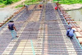 Steel-reinforced concrete bridge under construction over Namkatin Creek