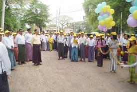 A ceremony to open a new township office building and to erect a signboard of the office building of Union Betterment Party headed by Thura U Shwe Mann was held in the compound of U Maung Htay’s house on Sakantha road in Lutlatyay ward, Kyaukpadaung township, Nyaung-U district, Mandalay region this morning.