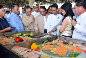 A ceremony to lay foundation for a modern cold storage and fish cracker factory in the Food Industry Complex project at Ayeyawday Region, Pantanaw Township was held in the project compound yesterday morning. The Food Industry Complex project was implemented by Global Earth Agro & Aqua Industry Public Company Limited.