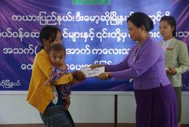 Department of Social Welfare under the Ministry of Social Welfare, Relief and Resettlement provided pregnant women and children below two years old at its one-stop service office in Dimawso Township, Kayah State this morning.