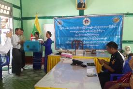 A ceremony to present relief supplies to storm victims was held at the office of the General Administration Department in Letpadan Township, Bago Region this morning.