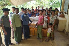 The staff from the Department of Disaster Management under the Ministry of Social Welfare, Relief and Resettlement provided relief supplies to the internally displaced people at Yan Aung Monastery in Maungtaw District, Buthidaung Township, Rakhine State this afternoon.