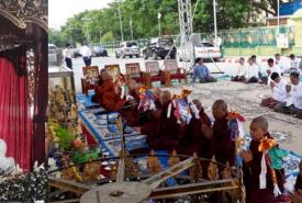 Two marble Buddha images, diamond bud, vane and golden umbrella crown that are meant for the Eternal Peace Pagoda were consecrated at the eastern entrance of the Uppatasanti Pagoda in Nay Pyi Taw yesterday along with a parittas reciting ceremony.