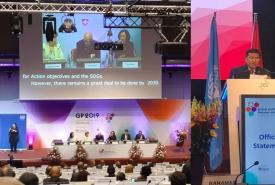 Deputy Minister of Social Welfare, Relief and Resettlement, U Soe Aung, permanent representative of Myanmar to UN U Kyaw Moe Tun, Director general of Department of Meteorology and Hydrology, U Kyaw Moe Oo and official from department of disaster management attended Global Platform for Disaster Risk Reduction held from 13th to 17th May in Geneva, Switzerland.
