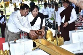 The Full Moon Day of Kason (Buddha Day) is of religious traditions for the Buddhists across the world. A ceremony to pour water at the Bo tree marking the Buddha Day was held at the Bo tree in the precinct of the Uppatasanti Pagoda in Nay Pyi Taw yesterday.