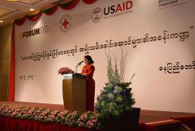 Vice President U Henry Van Thio’s wife Dr. Shwe Hlwan delivered an opening speech at a talk on “Role of Women Leaders in Increasing Resistance to Adversity” held at the Thingaha Hotel in Nay Pyi Taw yesterday morning.
