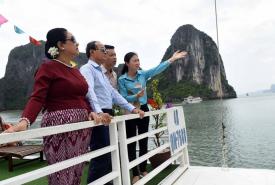 A delegation led by President U Win Myint and First Lady Daw Cho Cho who were in Viet Nam, Hanoi visited the UNESCO World Heritage site Ha Long Bay in Quang Ninh Province yesterday morning.
