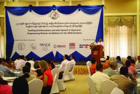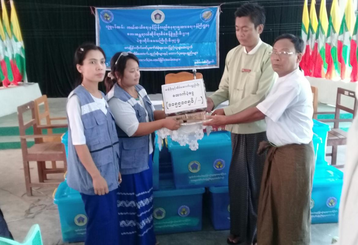 Officials from the Department of Disaster Management under the Ministry of Social Welfare, Relief and Resettlement donated humanitarian assistance to storm victims in Nattalin Township on 8 May.
