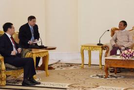 President U Win Myint received outgoing People’s Republic of China (PRC) Ambassador Mr. Hong Liang, who completed his tour of duty in Myanmar, at the Presidential Palace in Nay Pyi Taw, yesterday morning.