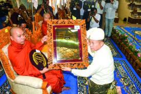 SAC Vice-Chairman Deputy Prime Minister Vice-Senior General Soe Win offers titles and certificates to winning monks in 77th Tipitakadhara Tipitakakovida Selection Examination