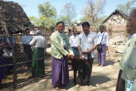 Livestock Breeding and Veterinary Department handed over goats to breeders at a ceremony held in the congregation hall of East Khansatgone village in Natogyi Township, Myingyan district, Mandalay region this morning.