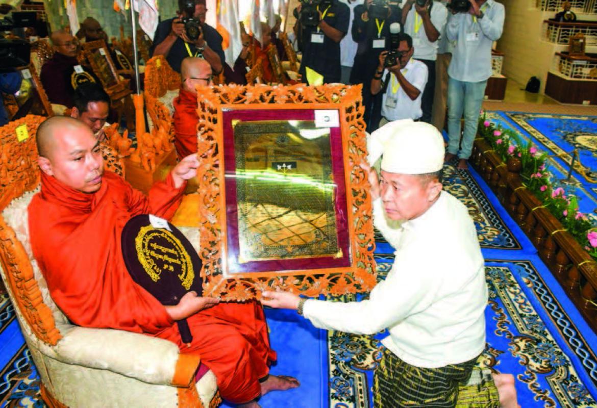 SAC Vice-Chairman Deputy Prime Minister Vice-Senior General Soe Win offers titles and certificates to winning monks in 77th Tipitakadhara Tipitakakovida Selection Examination