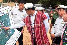 Vice President U Henry Van Thio accompanied by Chin State Chief Minister Salai Lian Luai, State Hluttaw Speaker U Zo Bawi, Deputy Ministers Maj-Gen Than Htut and U Hla Maw Oo, state ministers and officials went to newly established Kyin Dway Town in Chin State, Mindat District, Kanpetlet Township yesterday morning.