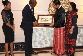 Vice President U Henry Van Thio and wife Dr. Shwe Hlwan hosted a dinner for the Seychelles delegation led by Vice President Mr. Vincent Meriton and wife Mrs. Daniella Hoareau at the Park Royal Hotel in Nay Pyi Taw yesterday evening.