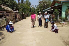 A concrete road is being paved at a cost of K 7 million, the interest received from “Myaseinyang” project, in Thakhutgone village, Thonegwa Township, Southern District, Yangon region. The concrete road is 320 feet long, ten feet wide and six feet high.