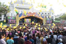 Yangon City Thingyan Central Pandal was formally launched for the Thingyan Festival for 2019 by Region Chief Minister U Phyo Min Thein at the Yangon city hall yesterday.