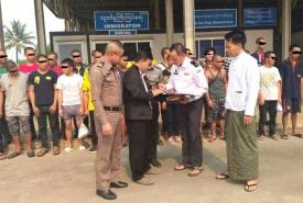 Altogether 62 illegal Myanmar migrant workers—46 men and 16 women who worked illegally in Thailand were handed over by Thai authorities to their Myanmar counterparts this afternoon at No 2 Myanmar-Tachilek Frienship Bridge in Tachilek, Shan State.