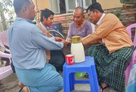 Pyithu Hluttaw representative U Mya Sein and Yangon Region Hluttaw representative U Zin Min Htway made a domiciliary visit to disburse social pension in Ward-68, Dagon Myothit (Seikantha) Township, Yangon east district, Yangon Region this morning . They gave K 30000 each to the elderly above 85 years of age.—Thein Soe (Township IPRD)