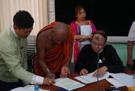 A ceremony to present crop compensation to 13 farm owners for loss of crops in the project area of Hanthawaddy International Airport began, was held at the meeting hall of the regional government office in Bago yesterday afternoon.