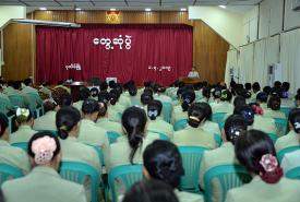 U Min Thu, the Union Minister for the Office of the Union Government, met with staff of the Ayeyawady Region General Administration Department at the Regional GAD office in Pathein, Ayeyawady Region, yesterday.