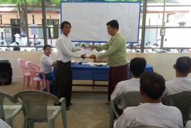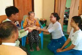A ceremony to furnish social pensions to the elderly who are over 85 years old was held at the public services office in Einme, Myaungmya Township, Myaungmya District, Ayeyarwady region at 10:00 am today.