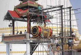 The world’s largest drum, which was carved in Indaw Township, was hanged in a building constructed in the style of the Nyaungyan period at the Kaunghmudaw pagoda in Sagaing on 27 March, said U Ni Tin, the Vice Chairman of the pagoda’s board of trustees.