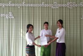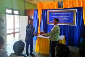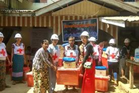 Representatives from the Myanmar Red Cross Society (MRCS) donated humanitarian assistance to displaced people in MraukU Township, Rakhine State on 26 March.