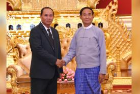 President U Win Myint received a Lao People’s Democratic Republic (LPDR) delegation led by Minister of Public Security Police Lt-Gen Vilay Larkhamfong at the Presidential palace envoys hall yesterday afternoon.