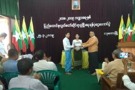 A ceremony to hand over Pyidaungsu Hluttaw development fund for 2018-2019 fiscal year, K 100 million, to village administrators and development contributory committees was held at the meeting hall of the Township General Administration Department in Ngapudaw Township, Ayeyawady Region this evening.